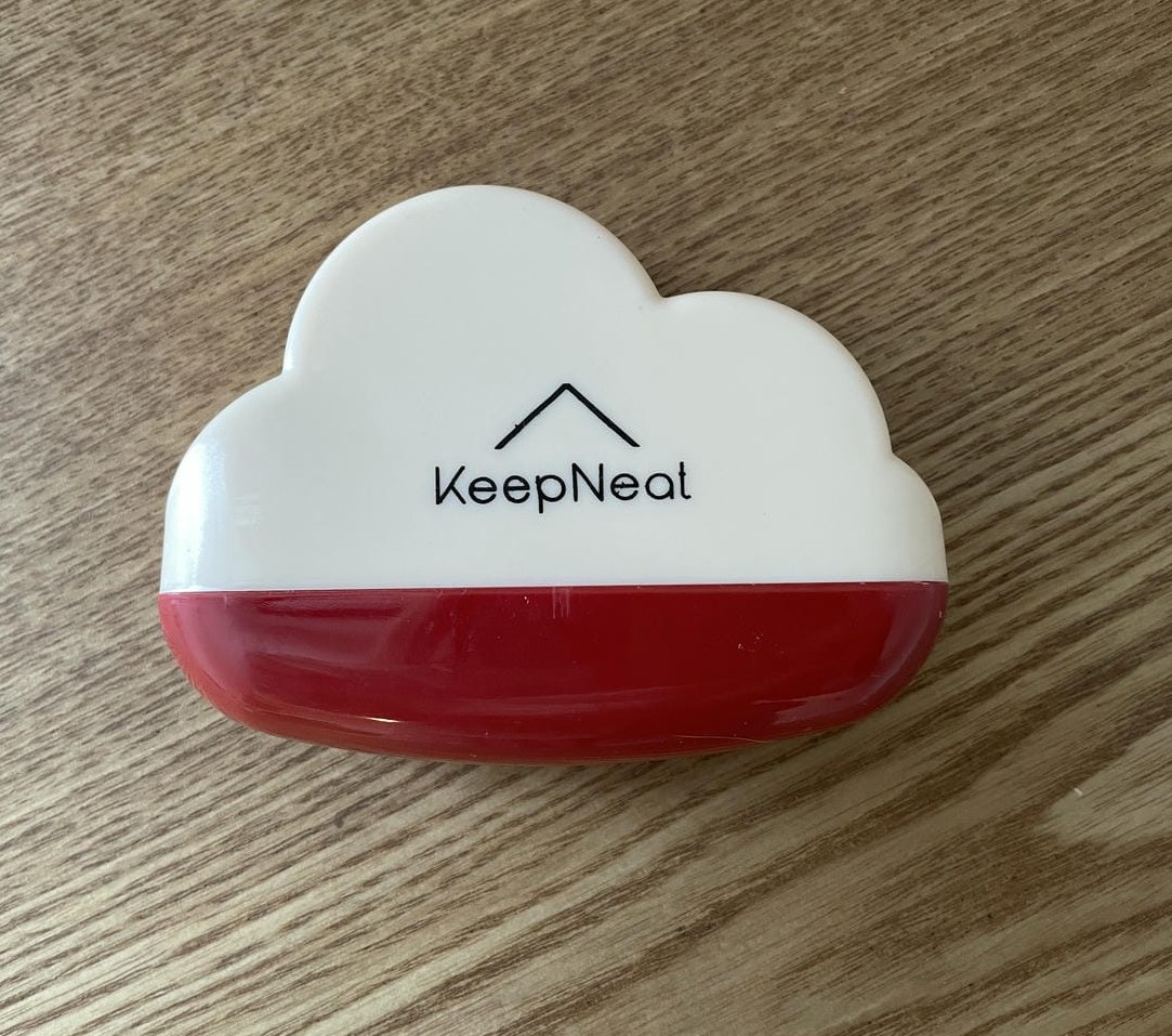 空けてみると、「KeepNeat(綺麗に保つという意味)」のロゴが汚れていますね。