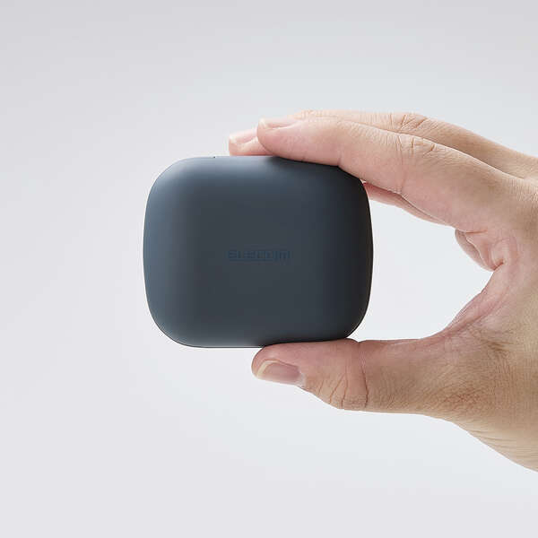 一般的なワイヤレスイヤホンのケースのサイズと比較すると、若干コンパクトなサイズ感となっています。