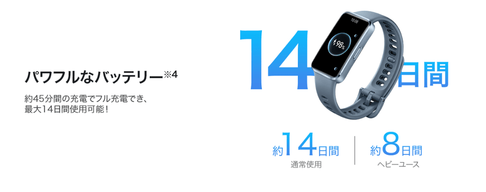 バッテリーの持ちも長く、なんと通常使用で最大14日間持ちます。