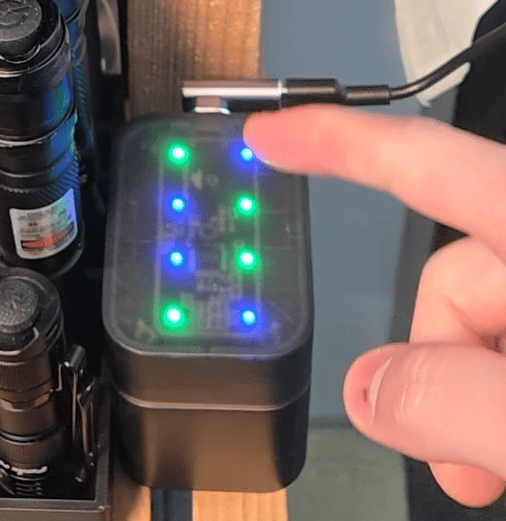 こんな感じに入れて、蓋を閉め、ケースにケーブルを接続すると充電が開始できます。