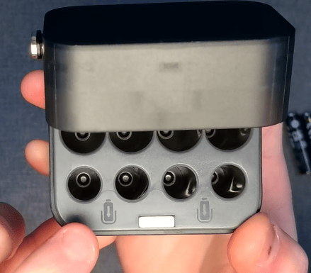 蓋を開けてみるとこんな感じで、単3と単4をそれぞれ4本ずつ入れることができるようになっています。