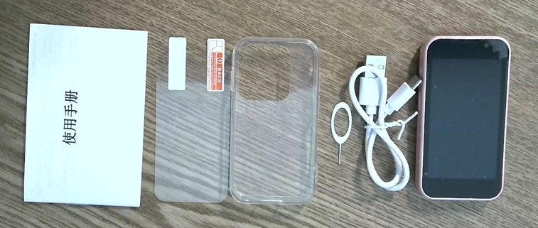 スマホ以外は、充電ケーブル、SIMピン、ケース、画面フィルム、説明書が入っていました。