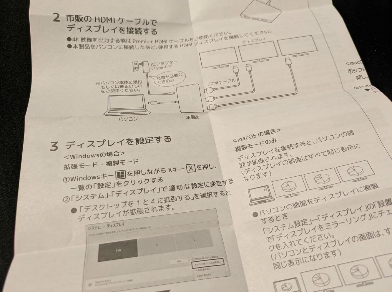 日本語の説明書も入っていたので、迷うことなく接続ができると思います。
