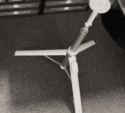 背面部分を押すと、脚が展開するようになっているので、地面に落とすだけで簡単に開く。