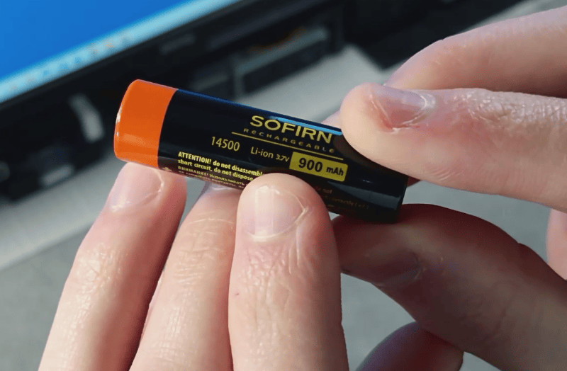 付属のバッテリーは、単3サイズの3.7Vリチウムイオン電池。