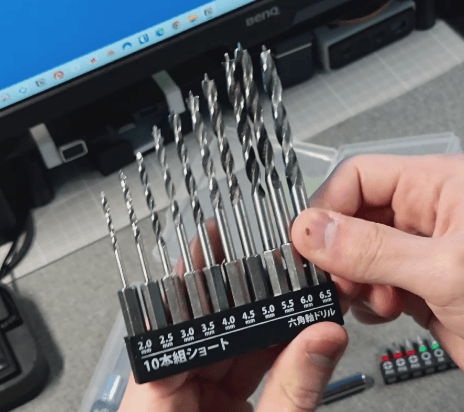 DIYで木材に穴を開ける時とか、木材にねじ止めする時とか、あとはドリルで下穴を開ける時とか。これこだけで結構使えます。