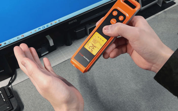 温度を測りたい対象に向けるだけで測定可能。もしくは接触でも可能。