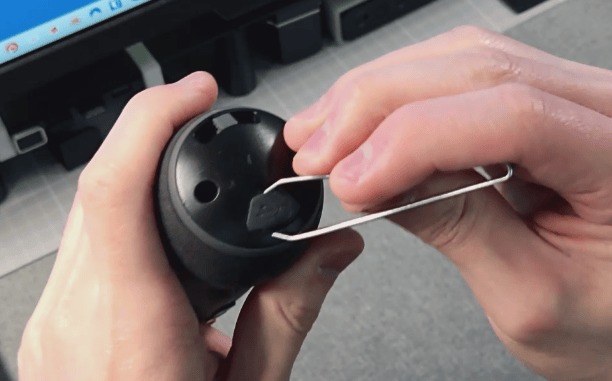 先端部分がネジになっているので、回すと充電ポートが出てくる。