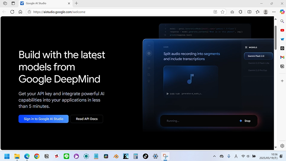 アクセスできましたら、「Sign in to Google AI Studio」をクリックし、Googleアカウントでログインします。