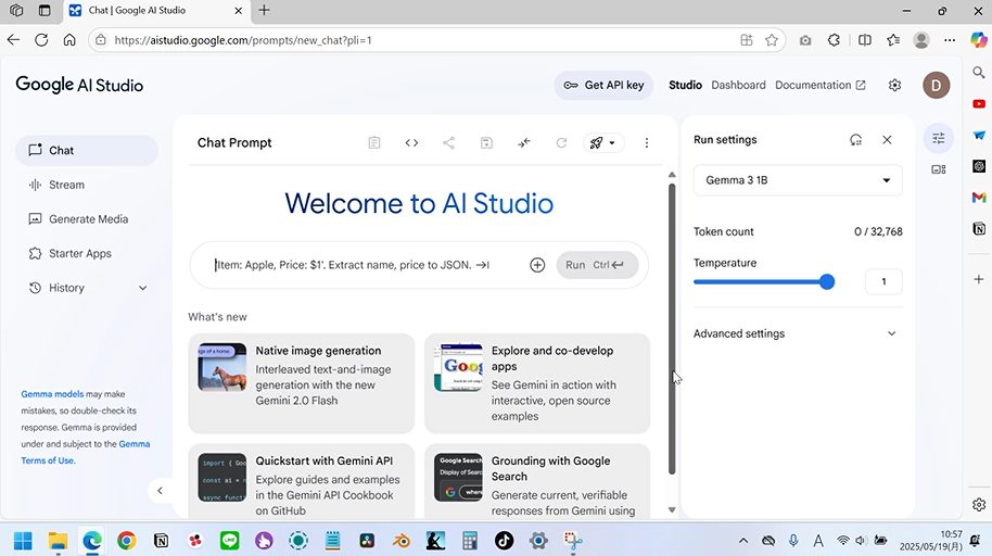 この「Google AI Studio」というのは、Googleが提供するAIを、誰でも簡単に試すことができる、公式のWebツールになります。