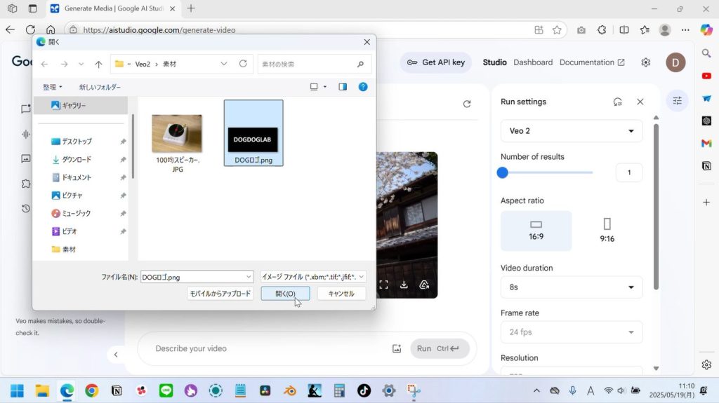 次に、「DOGDOGLAB」の文字が入った画像を選択して、「開く」をクリックします。
