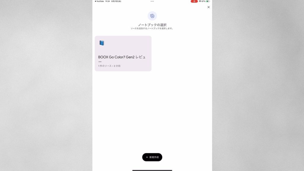 今追加しようとしているYouTube動画は、電子書籍リーダーについての動画なので、先ほど作成したノートブックをタップします。