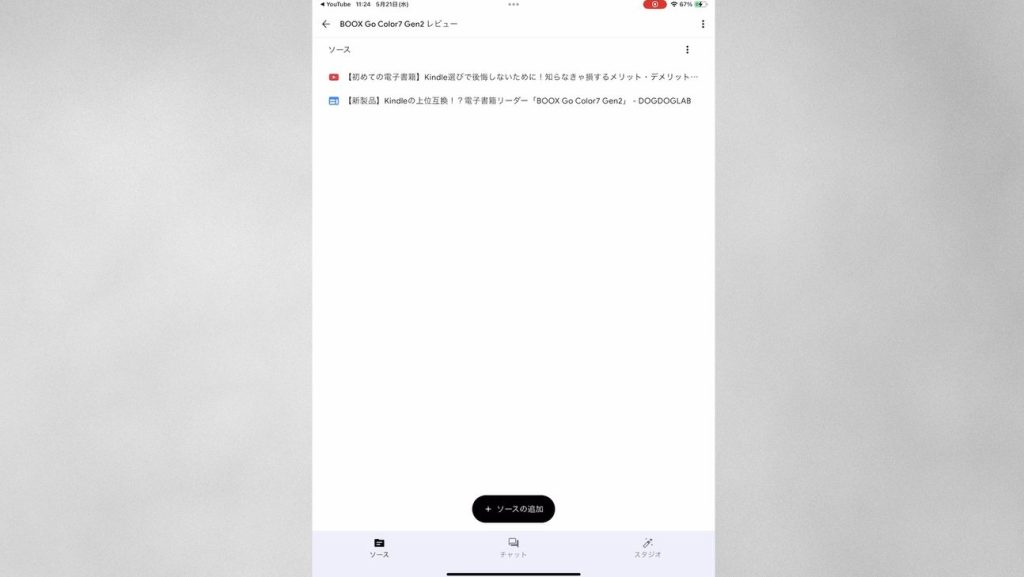 そうすると、ソースとして、電子書籍リーダー「BOOX Go Color7」の記事が追加されました。