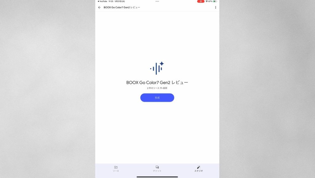 先ほどと同様に、「スタジオ」をタップして、「生成」をタップすればラジオが生成されます。