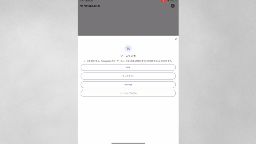 今後は、これをタップするだけで、「NotebookLM」にソースとして追加することができますので、一度設定していただくと良いかと思います。
