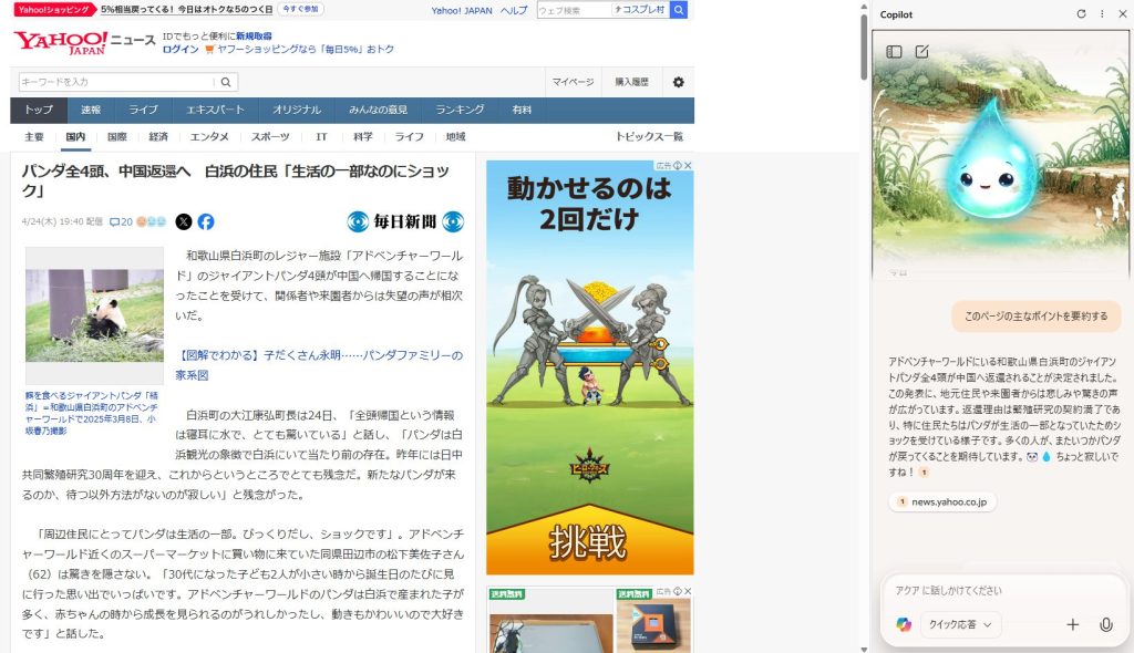 実際に現状、OpenAIと提携している、Microsoftの「Copilot」では、ユーザーが表示している画面をリアルタイムで見て、そのページの要約や質問を、とても簡単にすることができるようになっています。