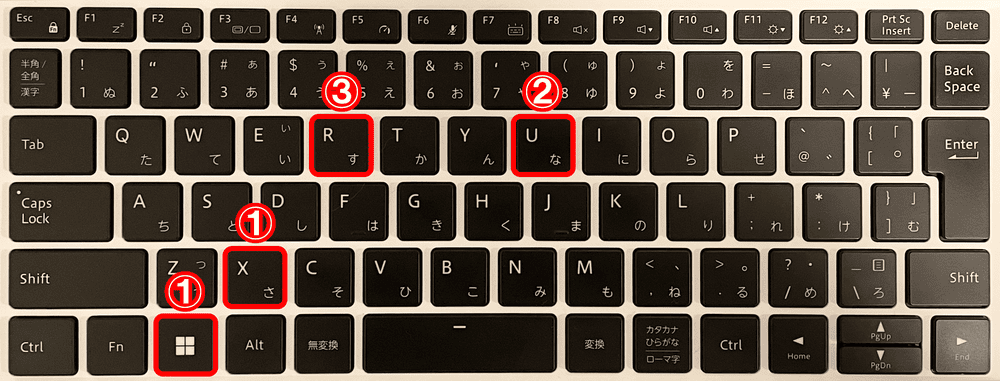 - 「Win+X⇒U⇒R」:再起動