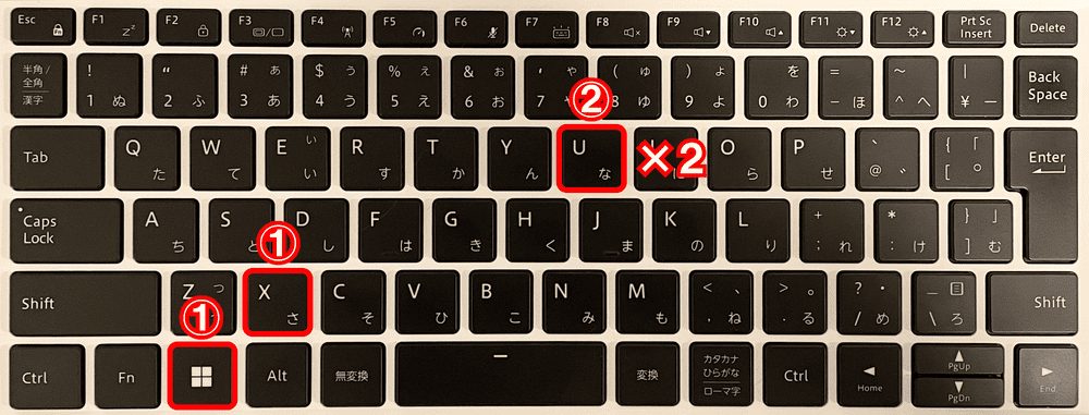 - 「Win+X⇒U⇒U」・「デスクトップ上でAlt+F4⇒Enter」:シャットダウン