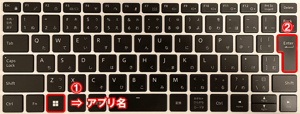 - 「Win⇒アプリ名⇒Enter」:アプリ起動