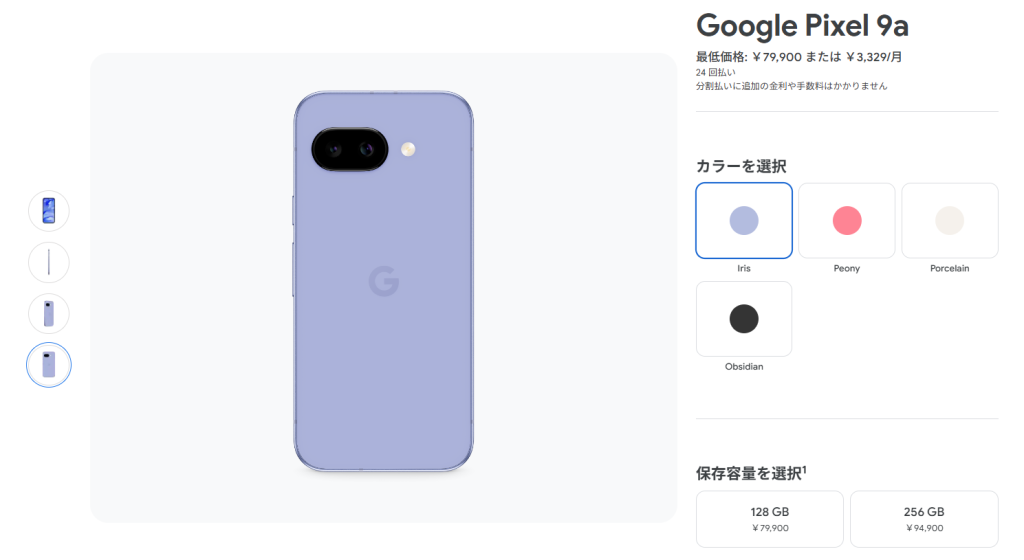 その他の機種については、Google公式「Pixel9a」販売ページにてご確認ください。