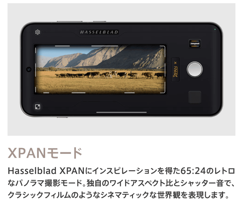 一方「OPPO Find X9」は、有名なカメラメーカーであるHasselblad監修のカメラで、「Hasselblad XPANモード」という、65:24のパノラマ撮影が可能だったりします。