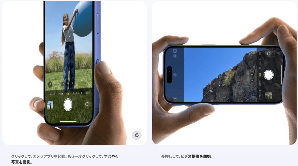 「iPhone 16」と「iPhone 17」は、アクションボタンという、実行したいアクションを自由に登録して素早く実行できるものになっています。