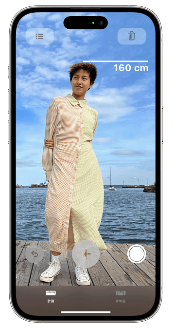 これは、光で周りの形や距離を測ることができるセンサーで、このように、計測アプリで簡単に身長やもののサイズを測ることができます。
