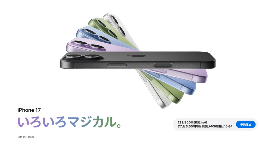 今回は、2025年09月19日発売予定の「iPhone17シリーズ」
