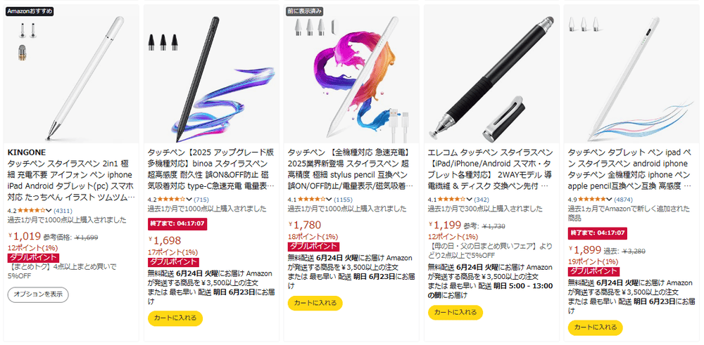 ただ、ペンは、amazonなどで非正規のペンを2,000円程度で購入できるので、描き心地にこだわらないのであれば、高い純正ペンを購入しなくてもいいかと思います。