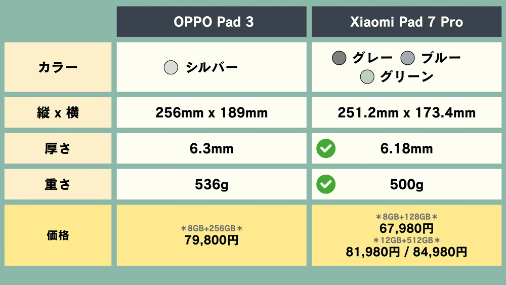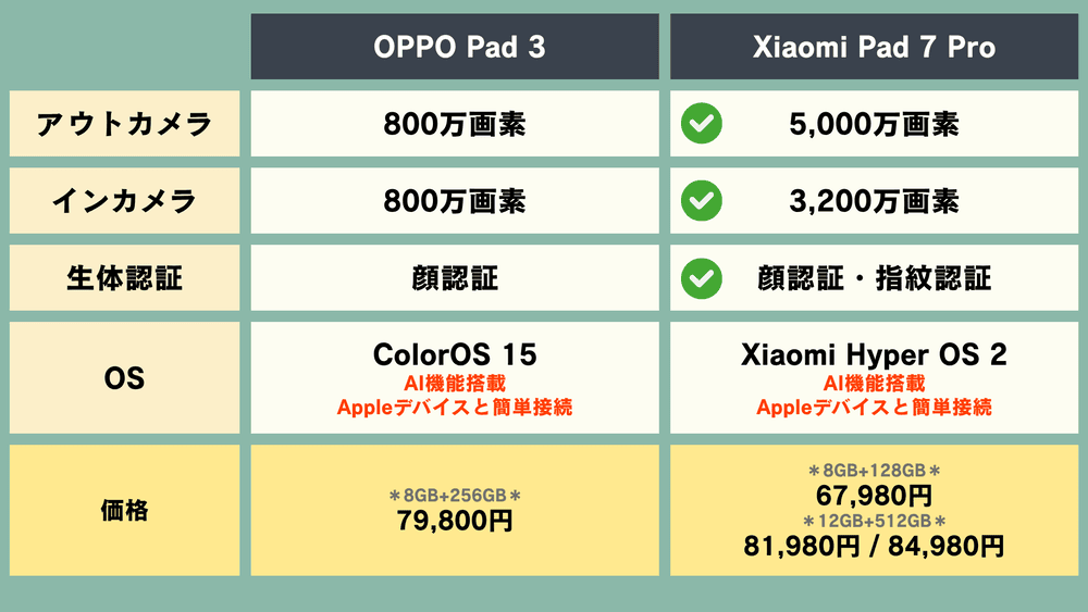 同価格帯の「Xaiomi Pad 7 Pro」を比較していきます!