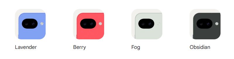 カラーは、「Pixel 10a」が、ラベンダー、ベリー、フォグ、オブシディアン。