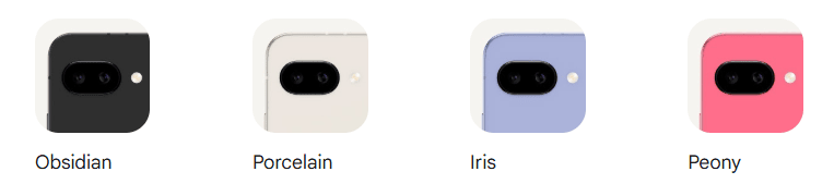 「Pixel 9a」が、オブシディアン、ポーセリン、アイリス、ピオニー。