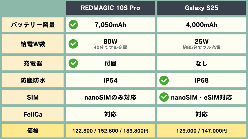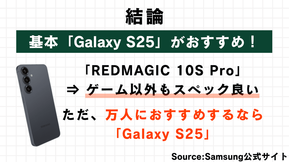 【スマホ比較】ゲーム最強「REDMAGIC 10S Pro」vs万能スマホ「Galaxy S25」
