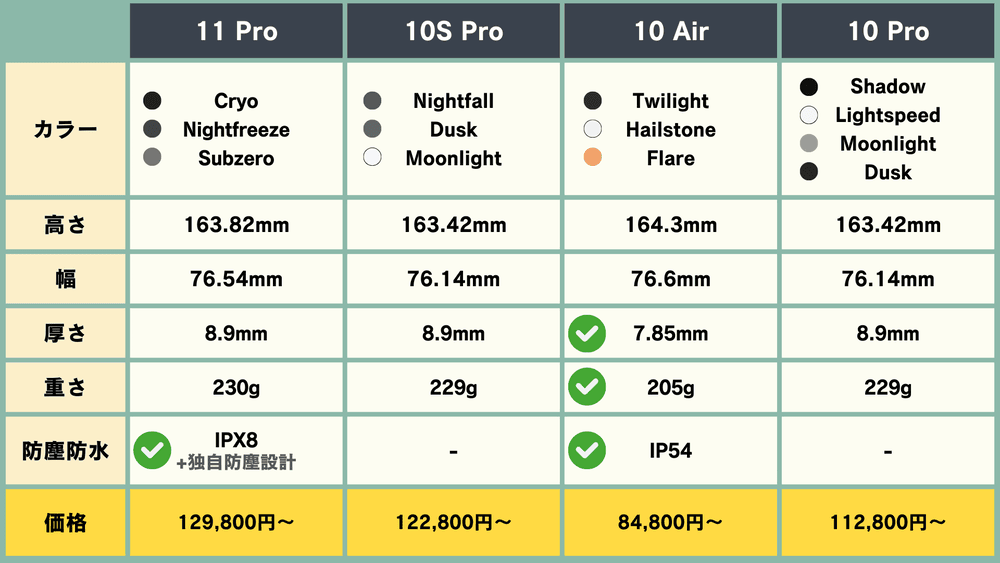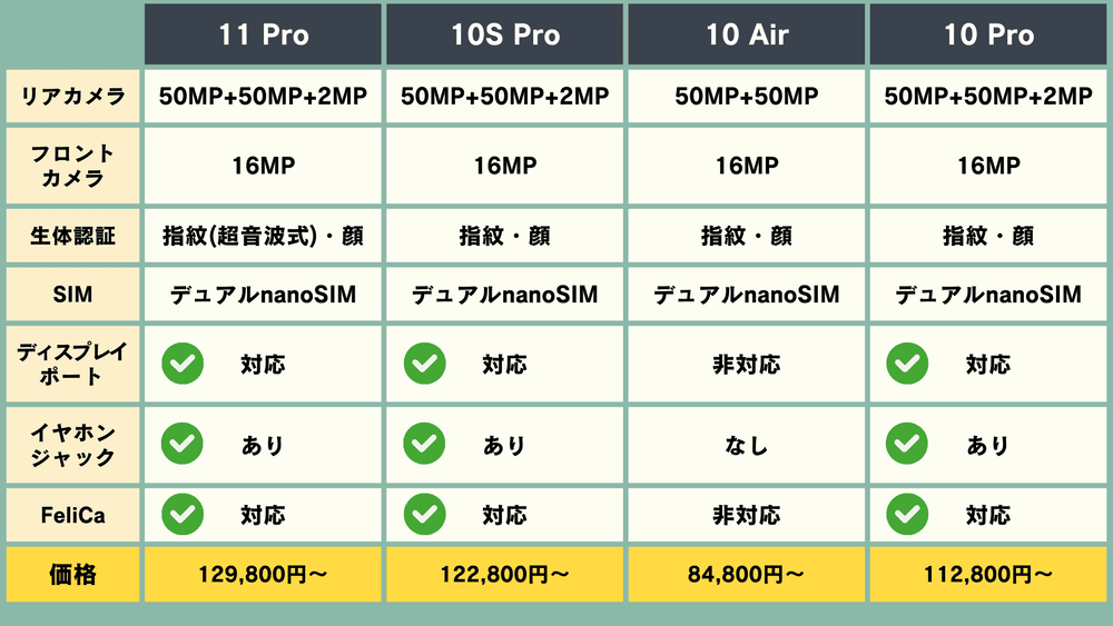 公式価格は、「11 Pro」が129,800円から、「10S Pro」が122,800円から。
