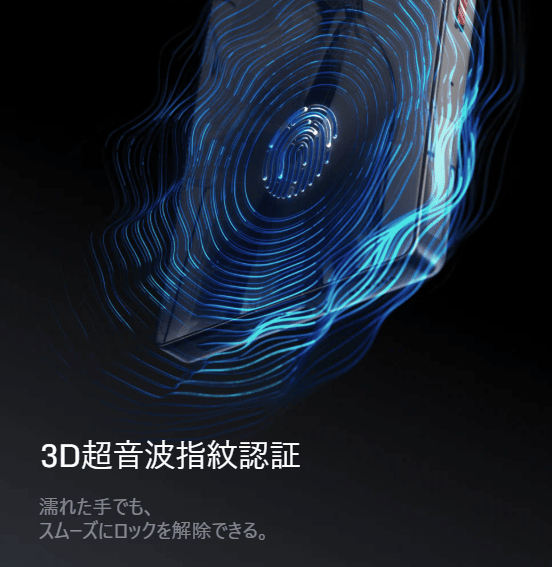 「11 Pro」は超音波式の指紋認証となっており、濡れた手などでもスムーズにロックを解除できます。