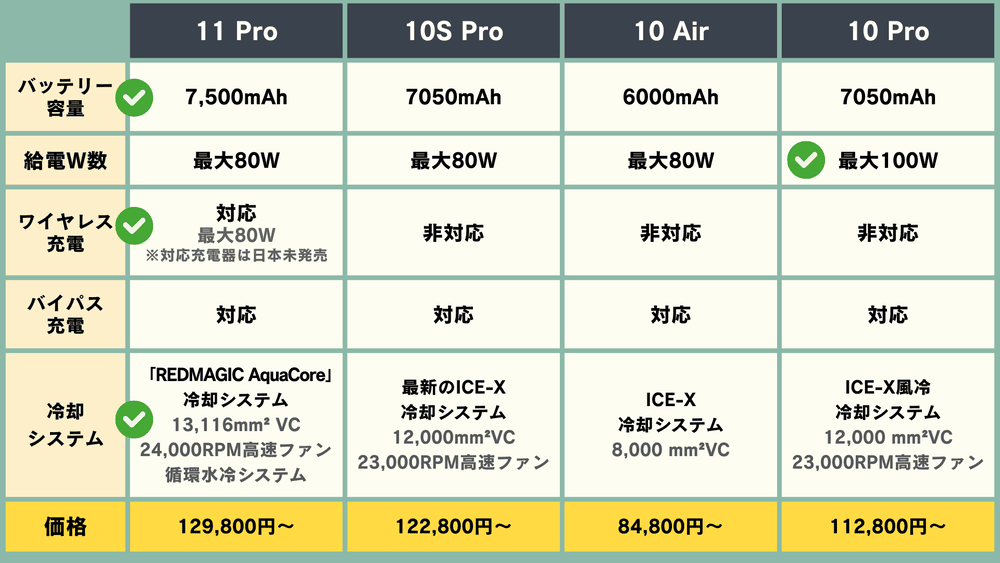 最強ゲーミングスマホREDMAGICシリーズスペック比較【水冷システム搭載】