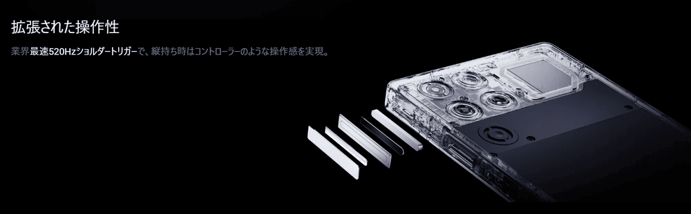 また、4つとも、本体上部の左右に520Hzのショルダートリガーという物理ボタンが搭載されており、ゲーム内の操作を割り当てることができます。