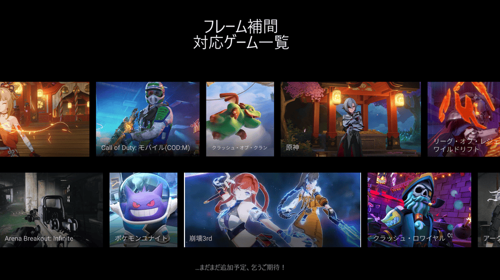 また、4つとも特定ゲームでのフレーム補間に対応しており、より滑らかな表示でゲームを楽しむことができます。