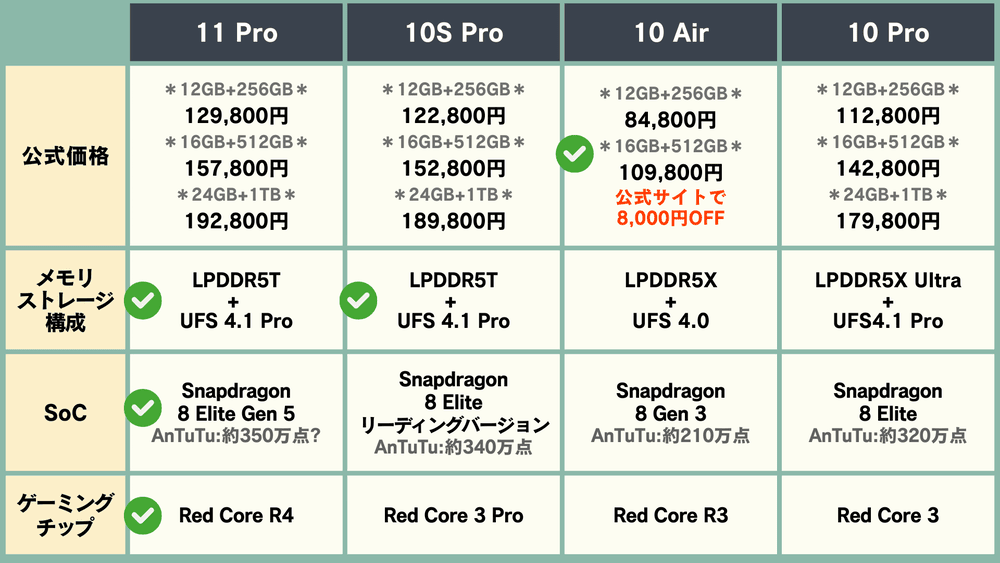 個人的には、ちょっと高くても、「REDMAGIC 11 Pro」を買うのがおすすめですね。
