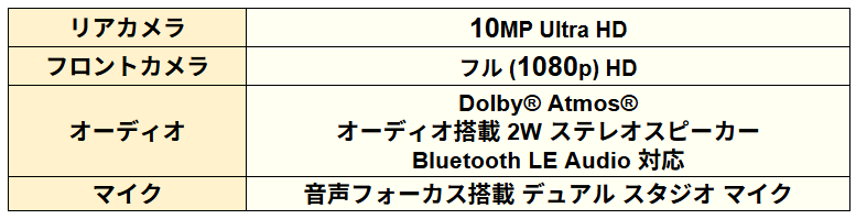 フロントカメラはフルHD、マイクは音声フォーカスが搭載されていて、ノイズ除去などをしてくれます。